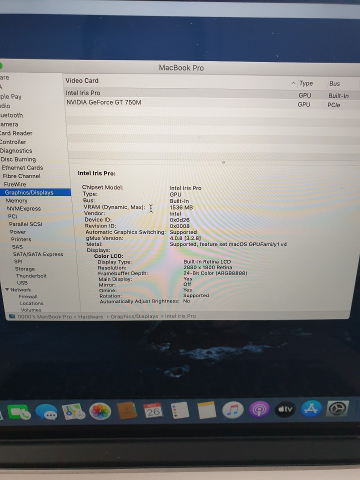 Graphics Intel Iris Pro 1536 MB